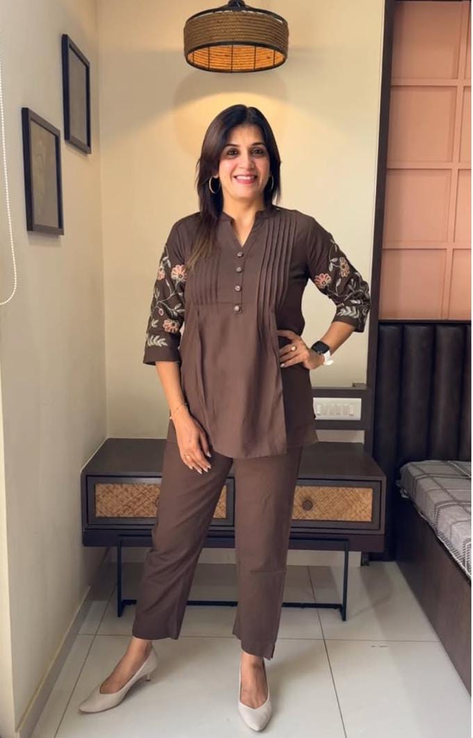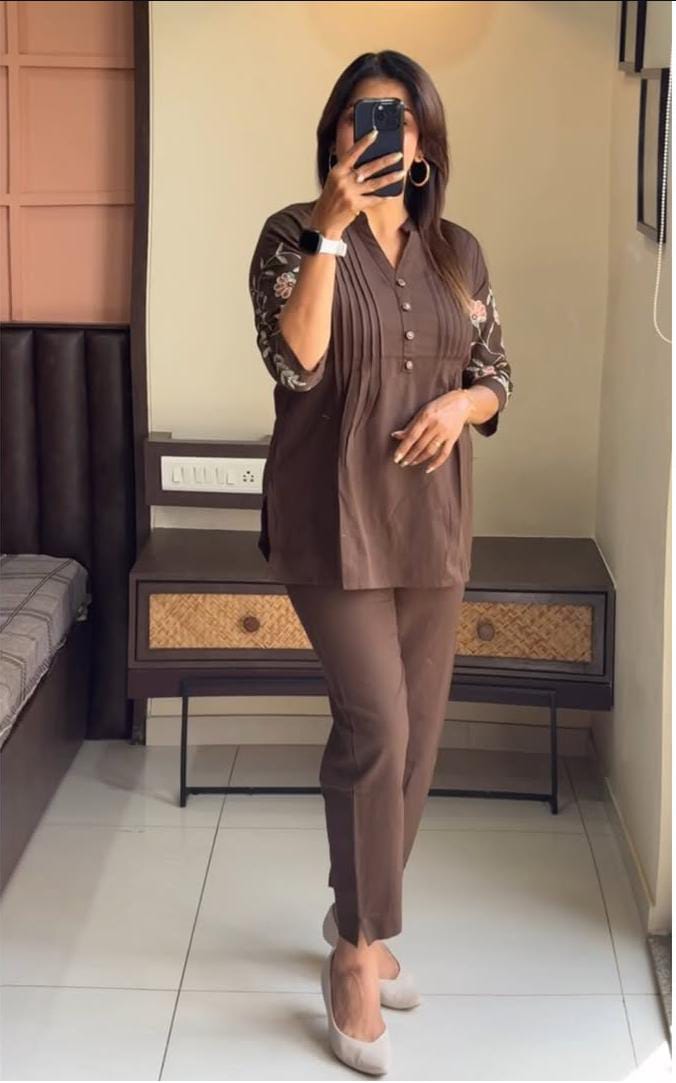 Elegant Cotton Co-ord Set with Floral Embroidery